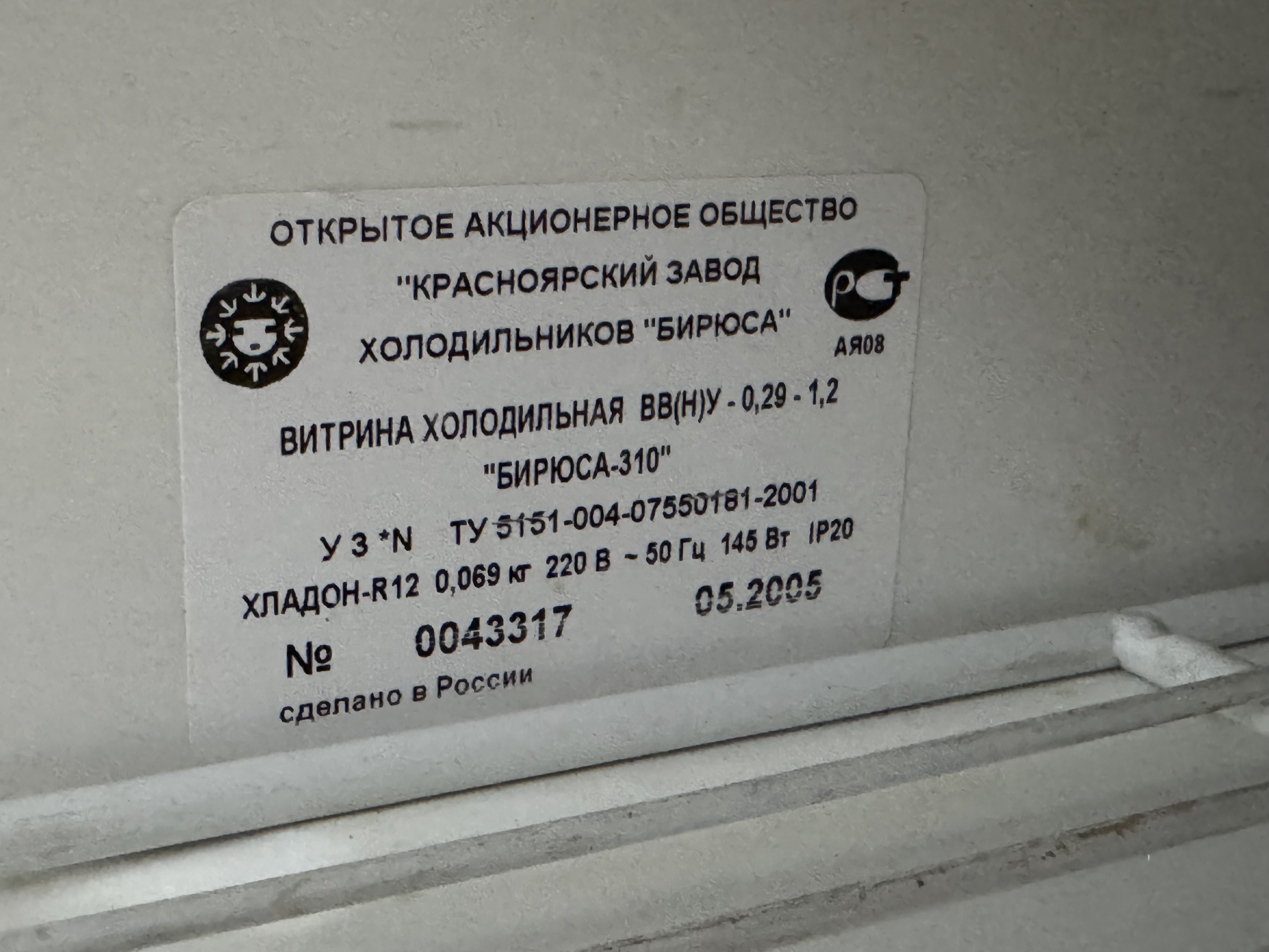 Витрина холодильная "Бирюса-310к"